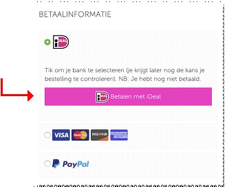 Select iDeal as your payment type by clicking the button that says “Betalen met iDeal”