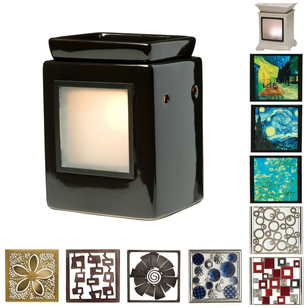 The next collection of warmers featured in the catalogue are the Scentsy Gallery Collection warmers and frames. The Ebony Cube, with its sleek modern lines was a big hit in the last catalogue and we also have the Classic Cream Gallery warmer, again offering you a choice of two warmers when building your Gallery warmer. Fresh for this catalogue, we have three new frames, Brass Blossom, Copper Cosmo and Pewter Pinwheel, together with the return of some favourites our previous catalogues.