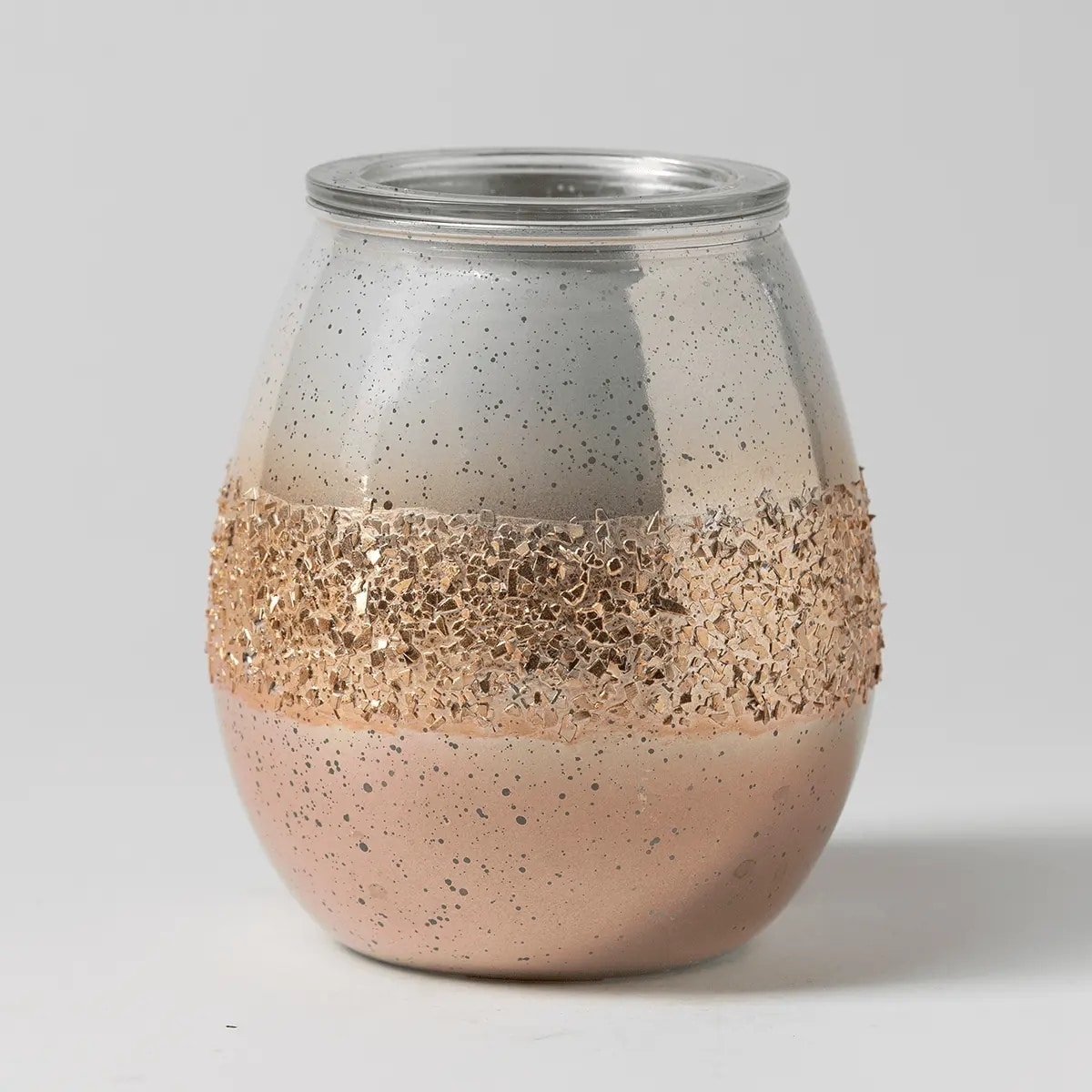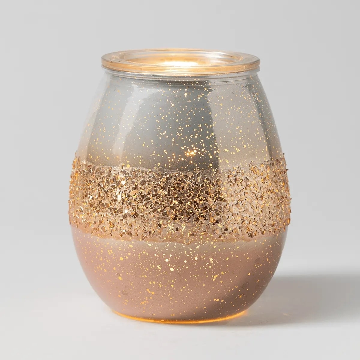 Leave them blushing with this stunning statement piece. A mercury glass finish and crushed glass accents truly shine when lit, showcasing the sparkling metallics in a new light.
