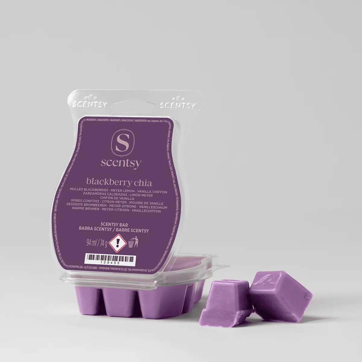 Blackberry Chia: Fragrance notes: mulled blackberries, Meyer lemon, vanilla chiffon – Smells like: blackberry jam / lemon slices / fluffy vanilla meringue