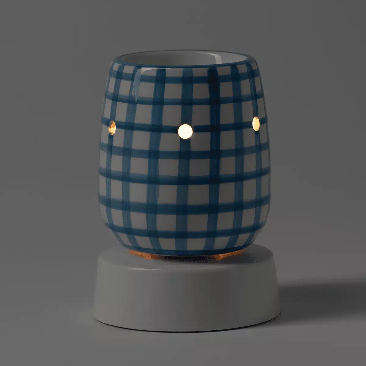 Cottage Gingham – Blue Mini Scentsy Warmer with Tabletop Base