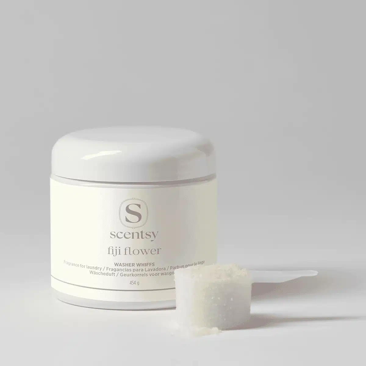 DIRECTIONS: Use scoop to measure Washer Whiffs. For maximum fragrance or for extra-large loads, use multiple scoops. Pour measured scoop into the drum of your washing machine, where you add your laundry. Do not put Washer Whiffs in the liquid detergent, liquid softener or bleach dispensers. Do not put Washer Whiffs in your dryer. For best results, use with other Scentsy Laundry products.