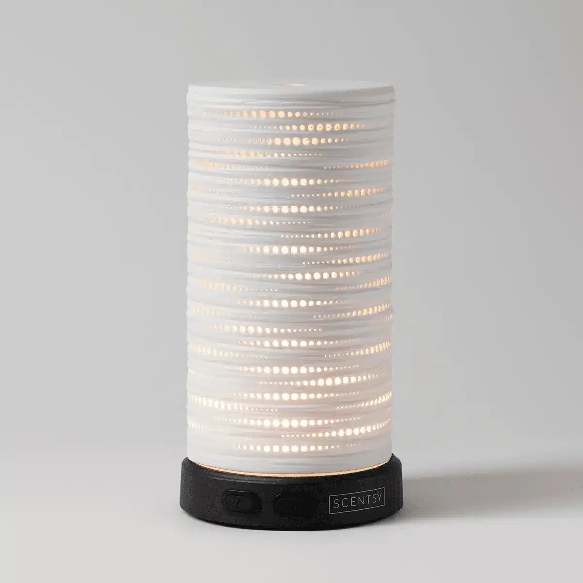 The Scentsy Diffuser features 16 elegant light options to suit your mood. There are two light modes, white and colour. The white mode features high, low and candle-flicker options. The colour mode features a continuous cycle of 12 colours (fuchsia, red, orange, yellow, lime, green, aquamarine, white, azure, blue, lavender, and purple), or hold the light button for 1.5 seconds and set the diffuser on one colour to complement your mood, décor or oil. The Scentsy Diffuser may also be used with no light.