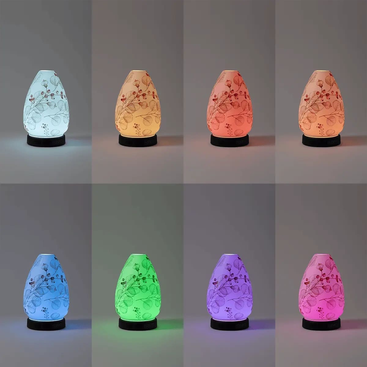 The Scentsy Diffuser features 16 elegant light options to suit your mood. There are two light modes, white and colour. The white mode features high, low and candle-flicker options. The colour mode features a continuous cycle of 12 colours (fuchsia, red, orange, yellow, lime, green, aquamarine, white, azure, blue, lavender, and purple), or hold the light button for 1.5 seconds and set the diffuser on one colour to complement your mood, décor or oil. The Scentsy Diffuser may also be used with no light.