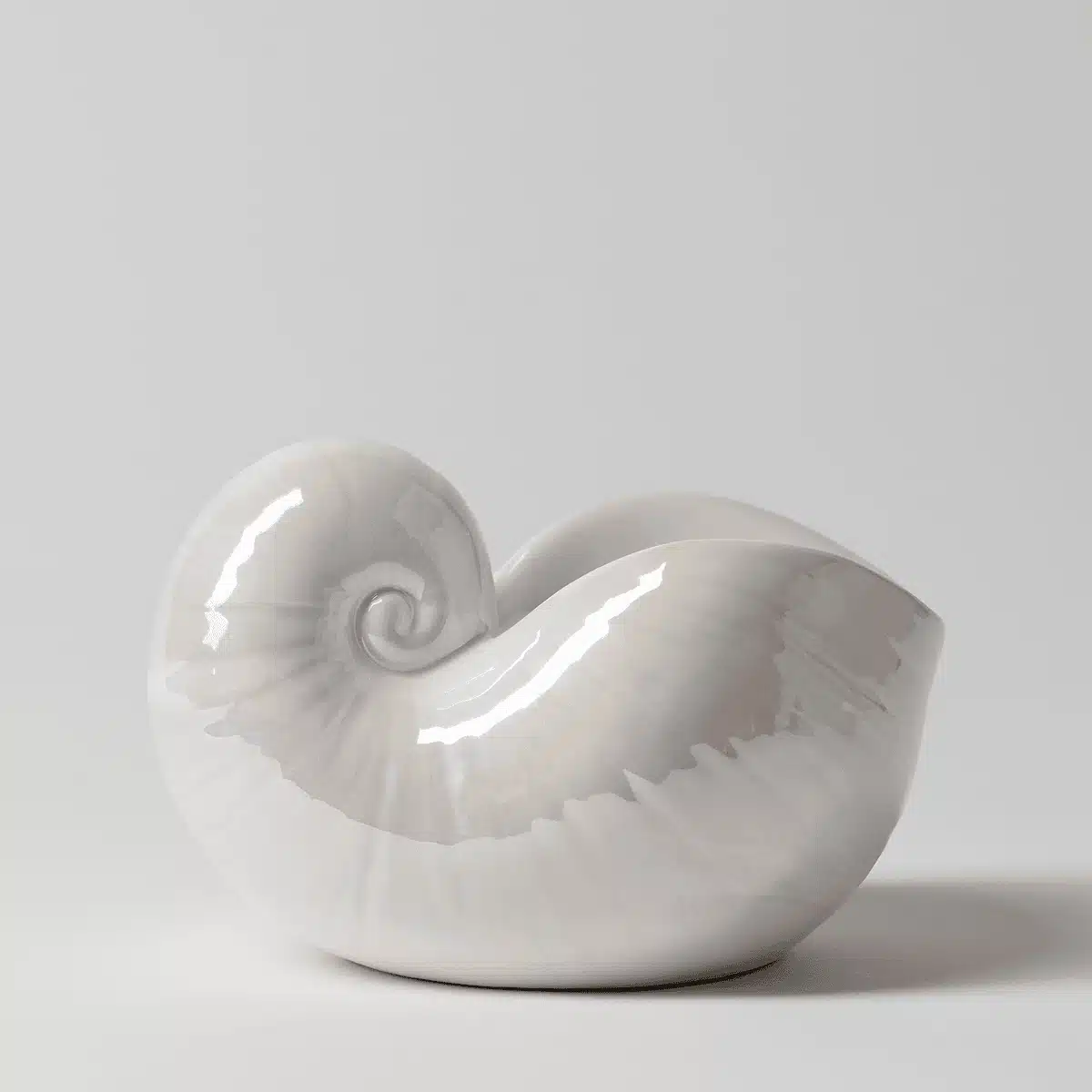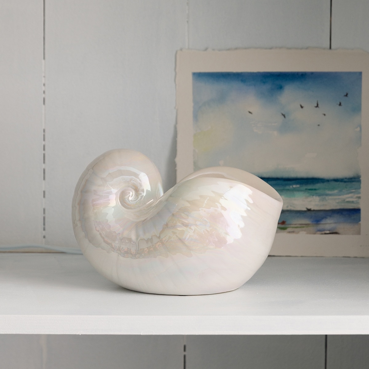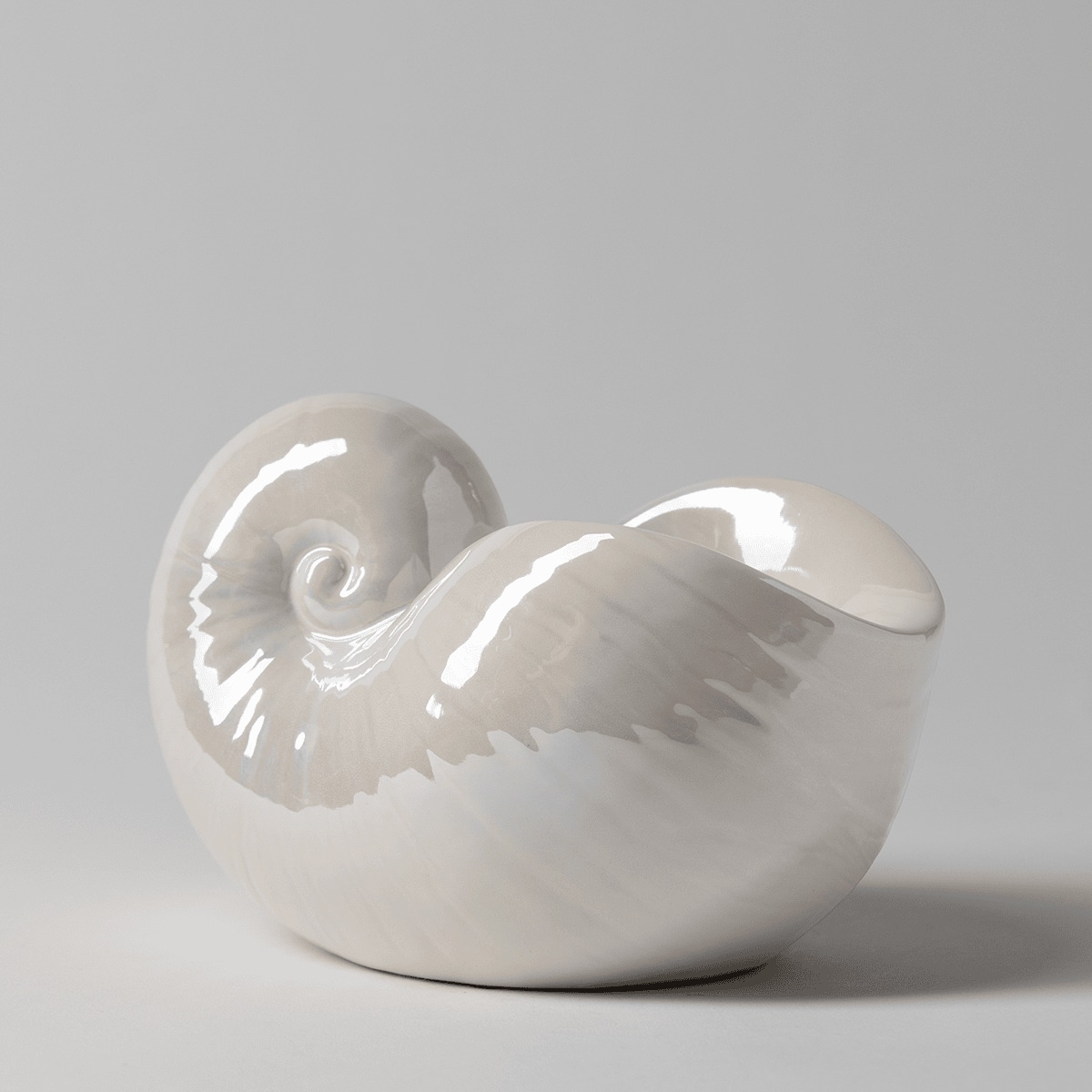This Warmer takes its inspiration from the nautilus shell, a symbol of nature’s perfect spiral. The organic shape and pearlescent glaze transform any room with the calming beauty of a coastal treasure.