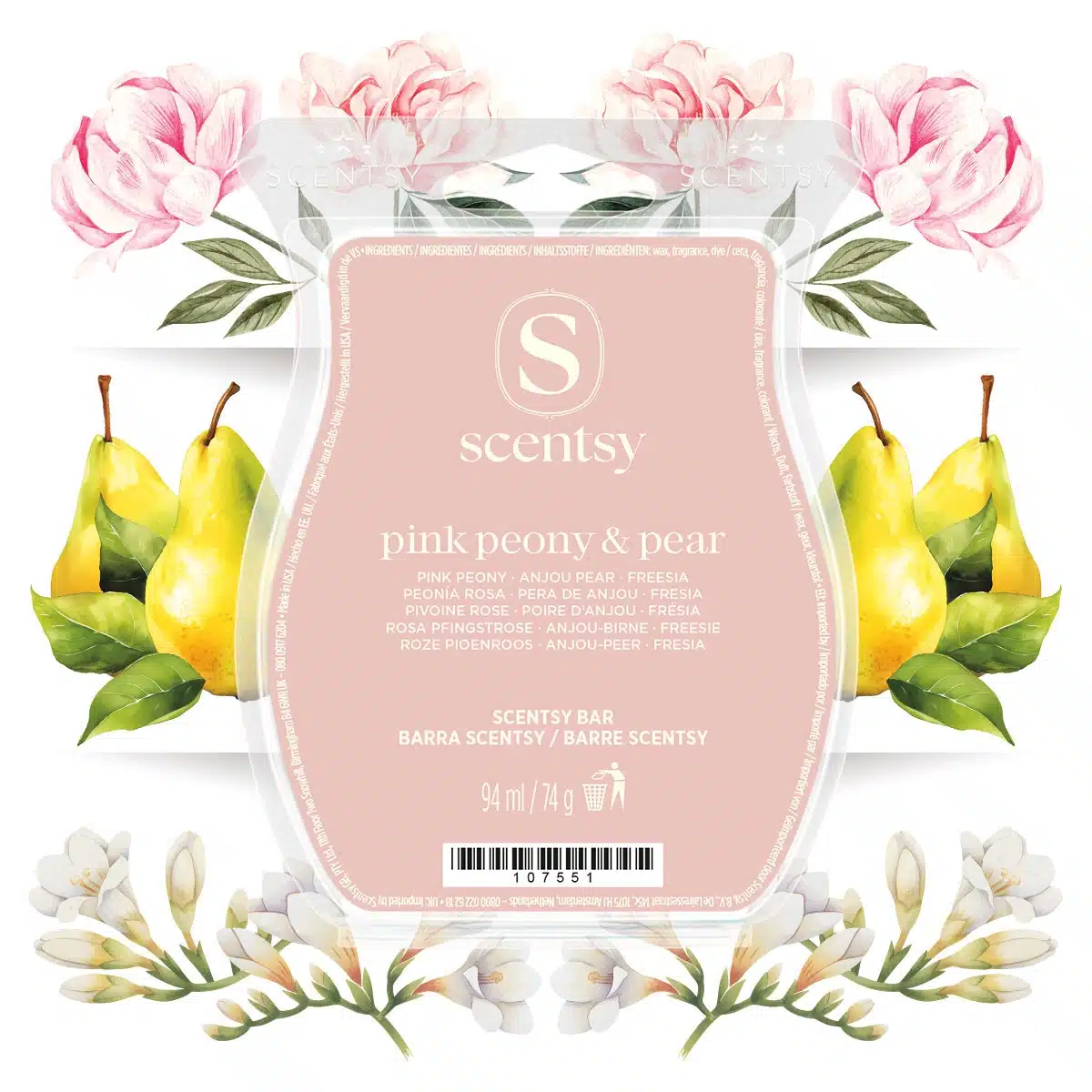 - Fragrance notes: pink peony, Anjou pear, freesia