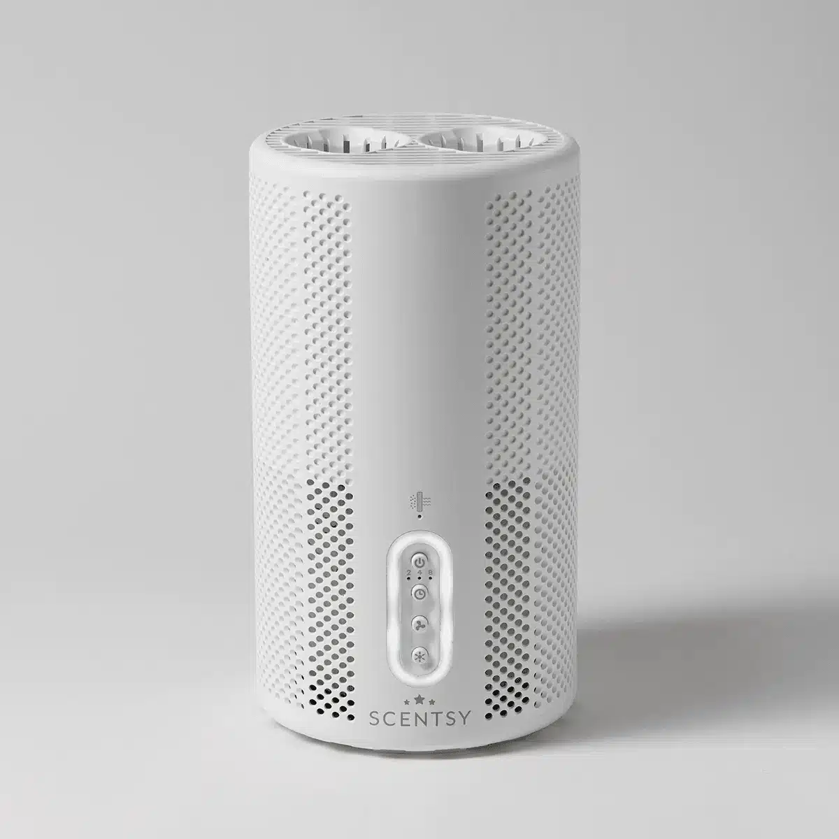 A quick look at the components of the Scentsy Air Purifier and how they fit together. The Scentsy Air Purifier cleans the air around you, capturing airborne particles and allergens with a HEPA H13 filter while dispersing exclusive fragrance through Scentsy Pods.