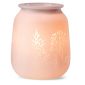 The natural design sandblasted onto this soft, pretty warmer really pops when lit.